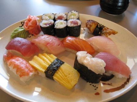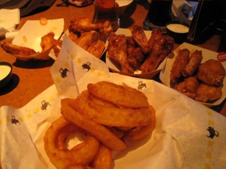 そんな感じの日々の中、外食で食べたものたち。「スエヒロ」のお寿司と「バッファローウィング」の肉。