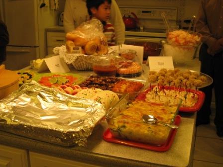 持ち寄ったお料理を食べて、子どもたちは地下のシアターで映画見てました。