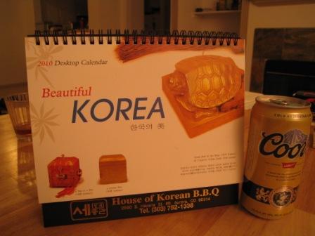 あと、韓国スーパーの近所の韓国焼肉屋に今年の焼肉の食べ収めをしに行ったんですが、年の瀬だからか、卓上カレンダーをくれました。