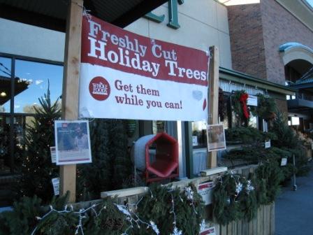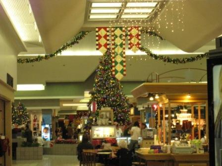 下の写真は(左)スーツケースを買ったモール内の様子と(右)ホールフーズ(スーパー)の入り口のリース売り場。