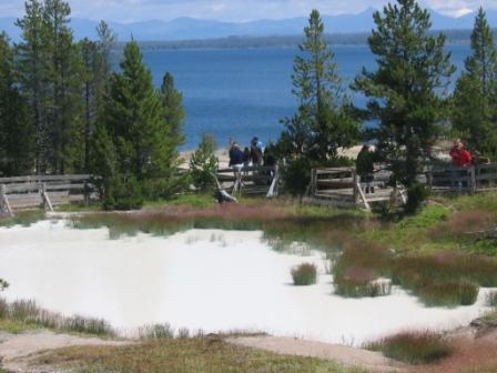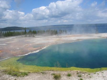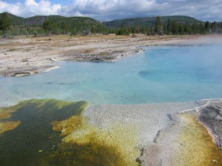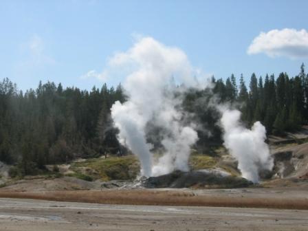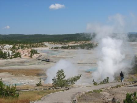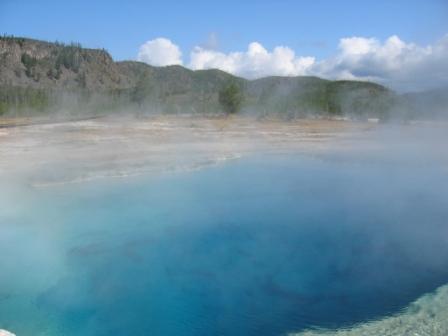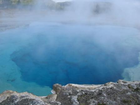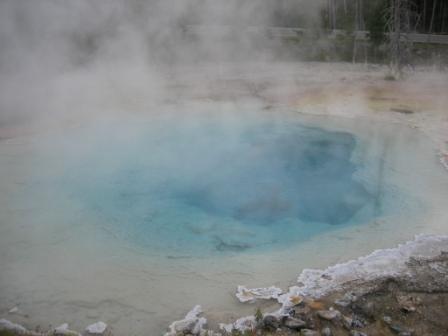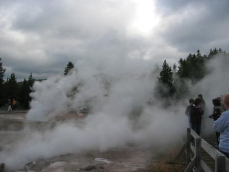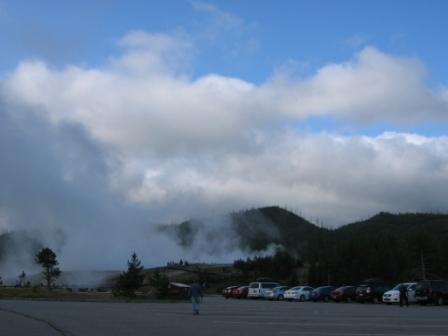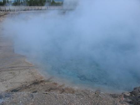 イエローストーンで一番人気のある、間欠泉がたくさんあるエリアです。湯気がすごくて、温泉のにおいがしました。