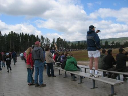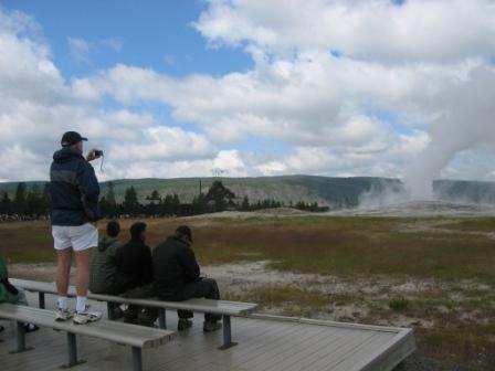 西側の観光拠点の「オールドフェイスフル・ガイザー」。