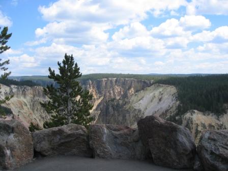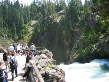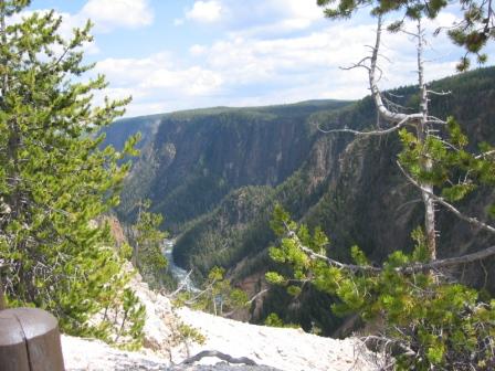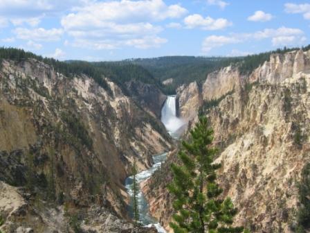 東側はイエローストーン大峡谷に面していて、断崖絶壁の谷を滝が勢いよく落ちていくのが見れます。