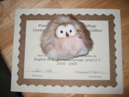 今期のESLを無事に卒業したので、認定書をもらいました。