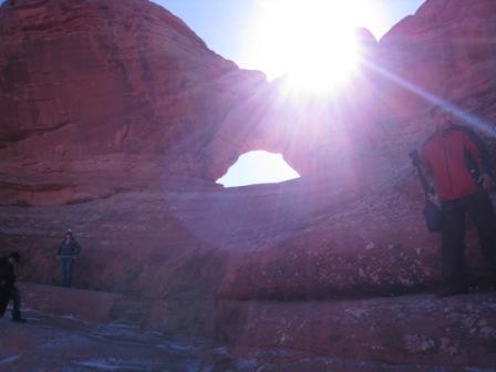 アーチの直前が断崖絶壁の崖で、死にたければいつでも死ねるのと、写真右下のポイントが、2月ということもあってかなり凍っていて、下手したら滑ってそのまままっさかさまでした。ははは。
