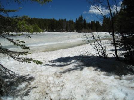 ベアレイク(熊湖)に行ってみたら、まだ雪がわんさと残っていました。涼しかった。