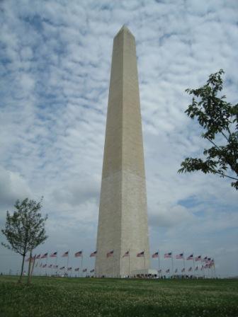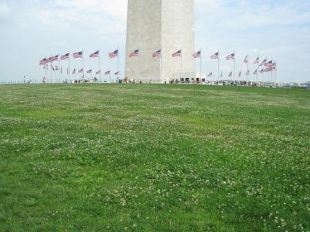 ワシントンモニュメント。下は一面のシロツメクサ。