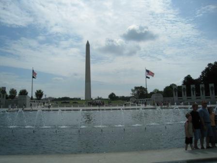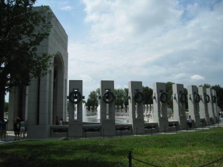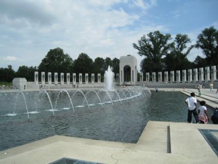 ワシントンモニュメントとリンカーンメモリアルに間にある、第2次世界大戦メモリアル。